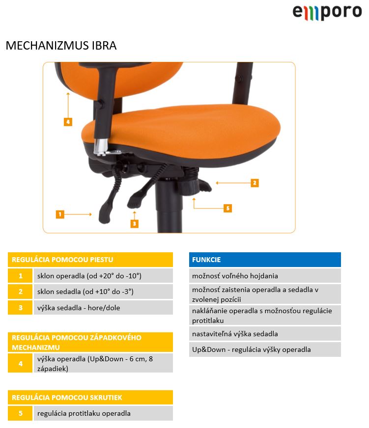 - voľný pohyb sedadla od -3 ° do + 10 ° a blokáciu vo zvolenej pozícii