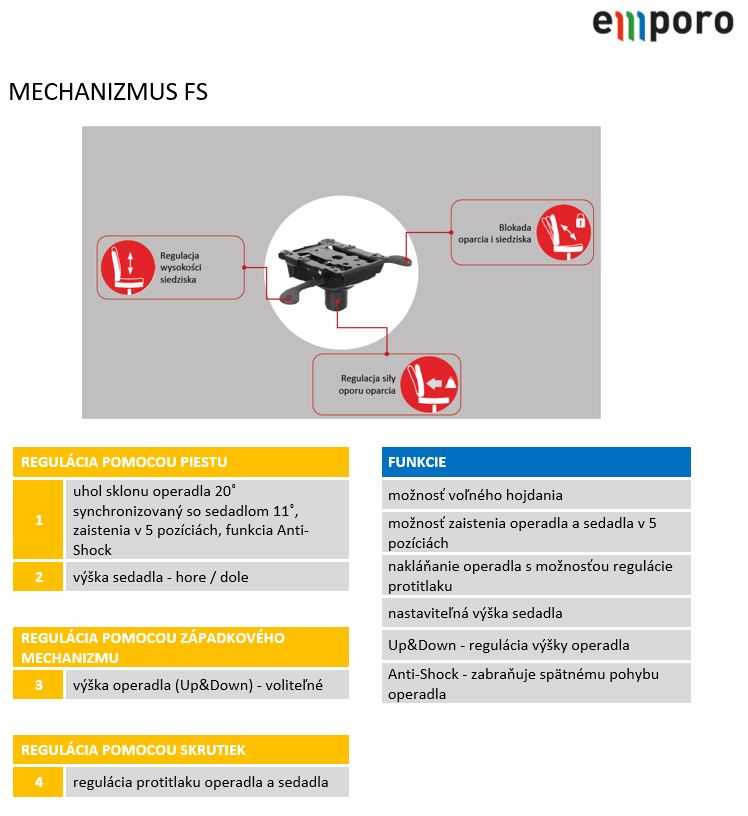 - komfortné sedenie s novým mechanizmom FS